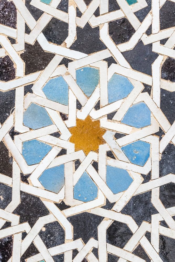 The picture shows well how colour use and form come together in Moroccan architecture. This kind of tiling is often found in patios, on floors or along walls. The combination of earthy and cool colours makes the pattern timeless and versatile. It is not only decorative, but also functional.