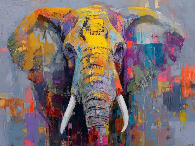 Buy this abstract artwork Colourful Power of the Elephant by Thea on canvas, ArtFrame, poster and wallpaper, printed on demand in high quality.