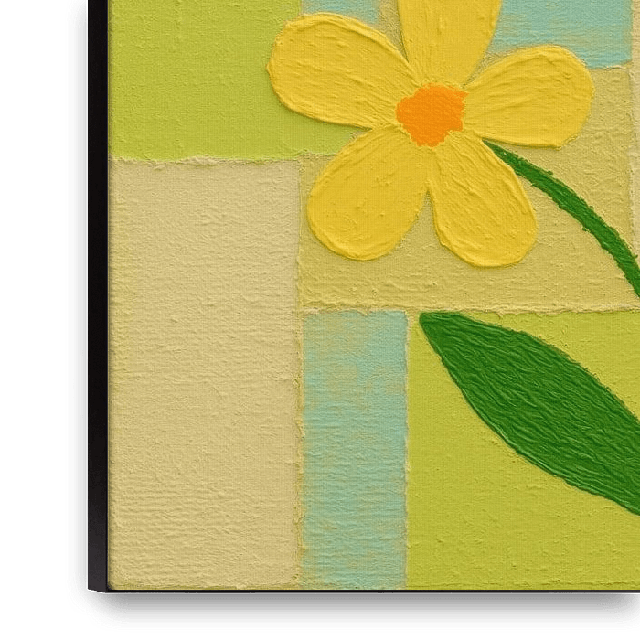 This artwork is a personal ode to the energy and freshness of spring. I wanted to create a composition that immediately brings a positive atmosphere into the home.
