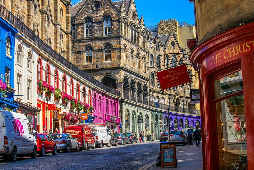 Buy the photo Colourful Victoria Street in Edinburgh by Patricia Hofmeester on canvas, ArtFrame, poster and wallpaper, printed on demand in high quality.