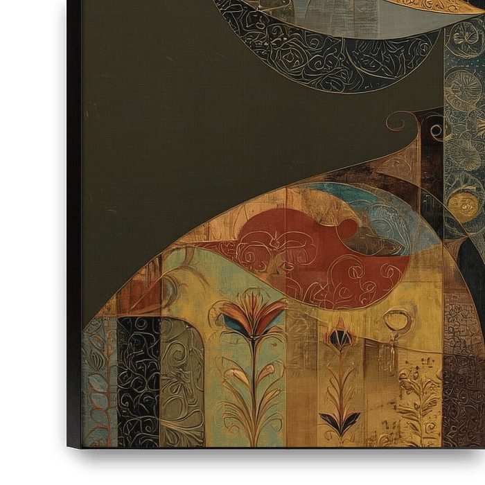 Details: women painting, abstract painting, modern art, colourful, face, face painting, style, patterns, woman, art Colours: gold, green, blue,…
