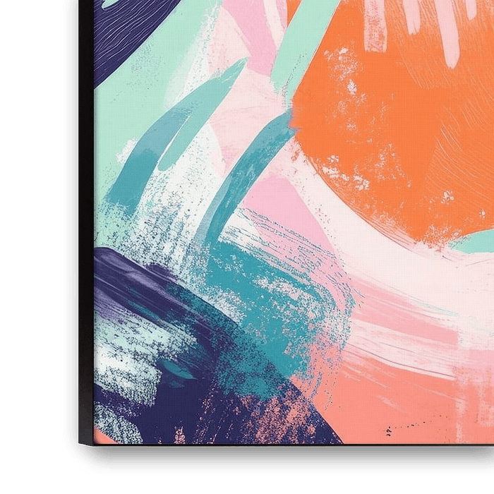 Vibrant colour harmony unfolds in dynamic brushstrokes that radiate energy and creativity. The combination of soft mint and bold coral tones draws the eye and creates an inspiring atmosphere. Ideal for a modern living room or a creative workspace, this work of art brings a breath of fresh air to any room.
