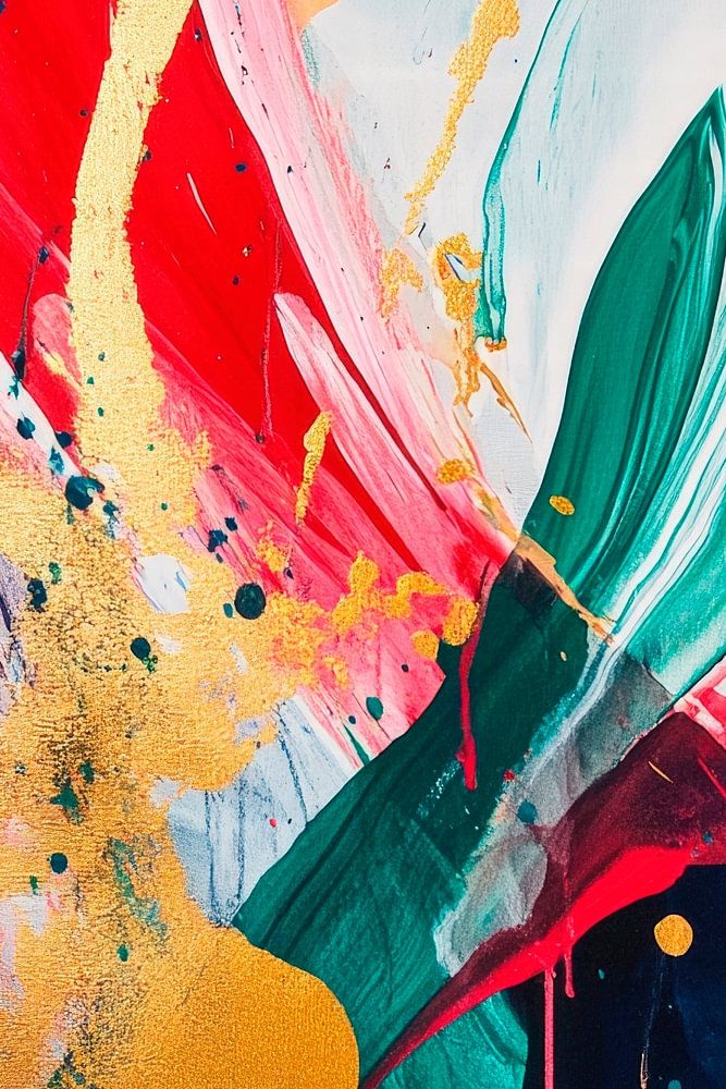 Vibrant explosions of colour in red, gold and soft green immediately catch the eye and add a dynamic touch to any room. The harmonious lines and sparkling accents create an inviting atmosphere, ideal for a living room or a creative kitchen where inspiration and joie de vivre are always present.