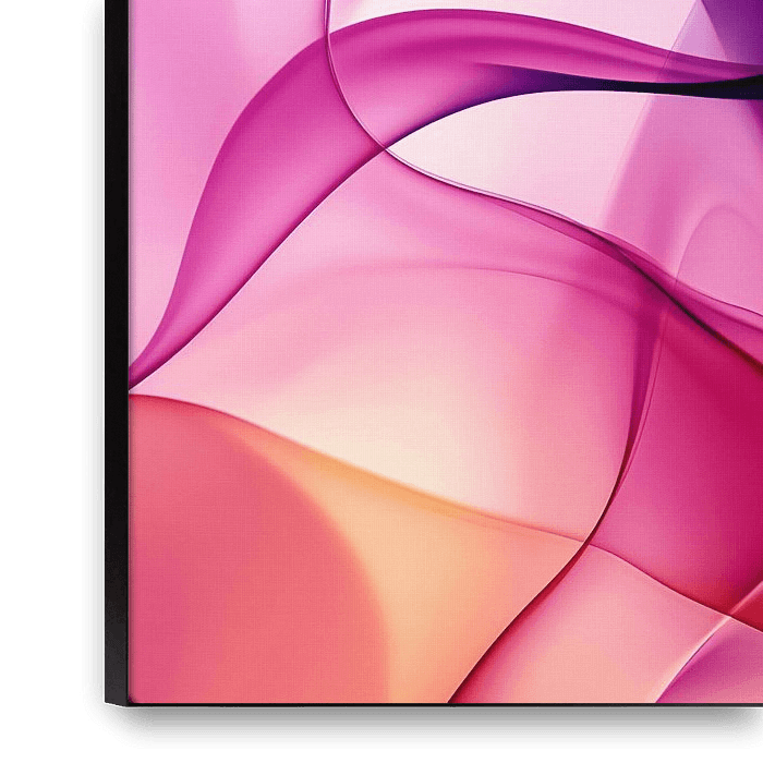 This abstract composition is a visual spectacle of flowing lines and beautiful transitions between pink, purple and warm orange tones. The design exudes energy and dynamism, perfect for modern interiors where colour and style are key. Whether used as an accent wall or as a print in a workspace, it adds a touch of sophistication and…