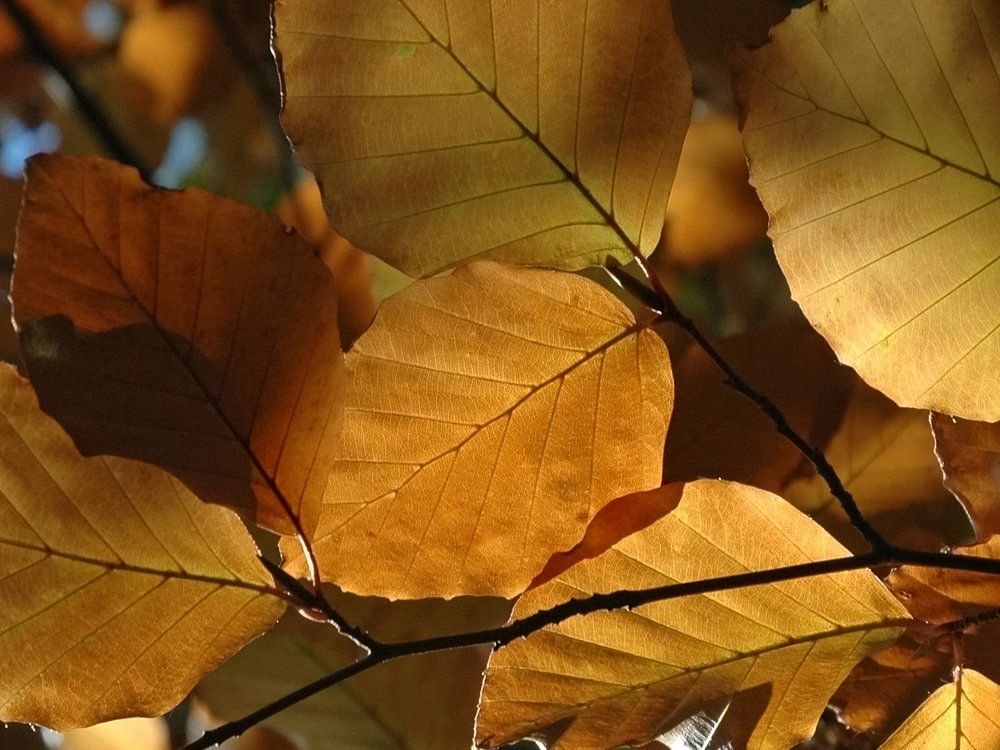 In autumn, the leaves of the beech trees change colour and they take on the most beautiful shades of red, brown and yellow. A true feast for the eyes.
