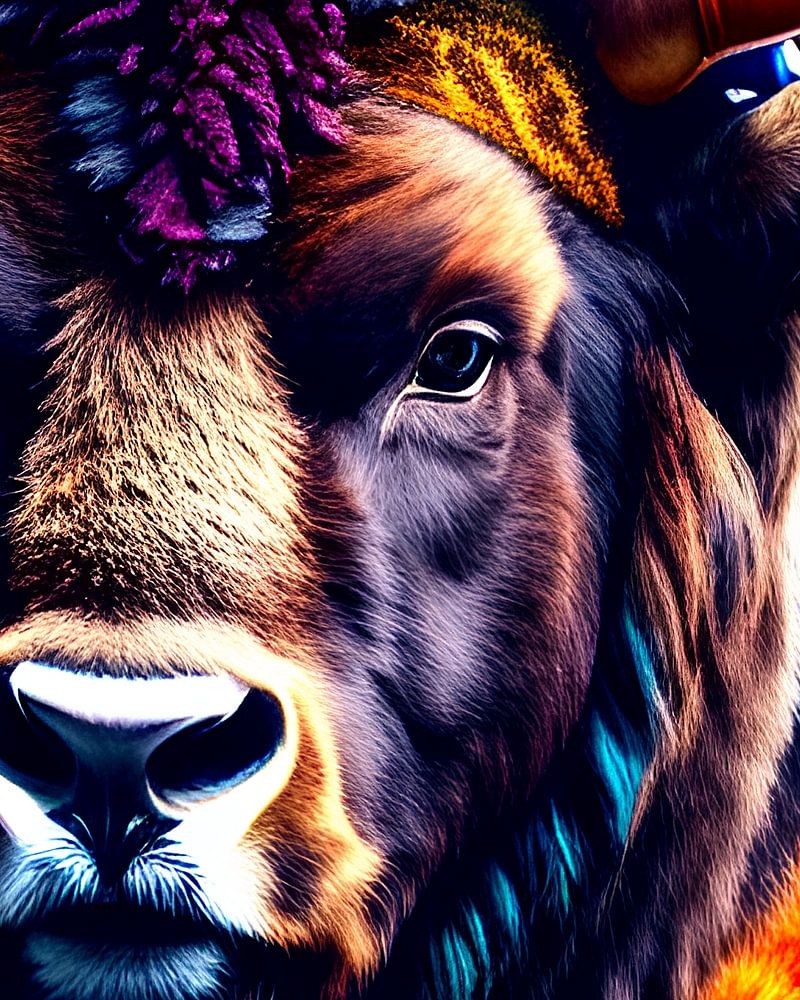 A fantasy bison with colourful accents