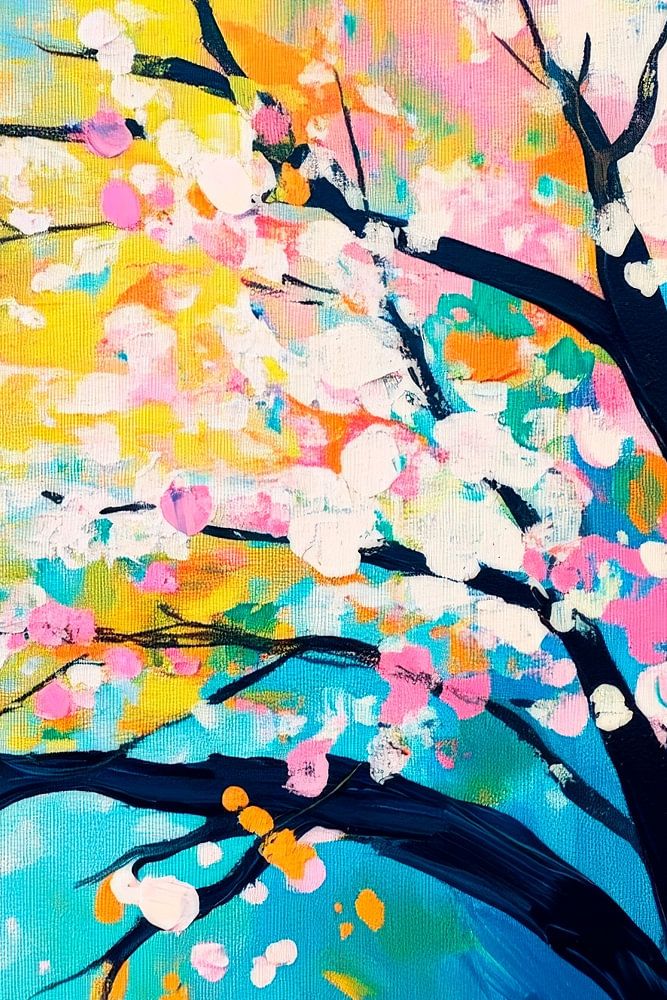 A blossoming tree blooms in soft, vibrant colours, its delicate blossoms softly awakening feelings of spring. The bold brushstrokes bring a lively dynamic to the room. Ideal for the living room or hallway, this work of art transforms any room into an oasis of freshness and joie de vivre.