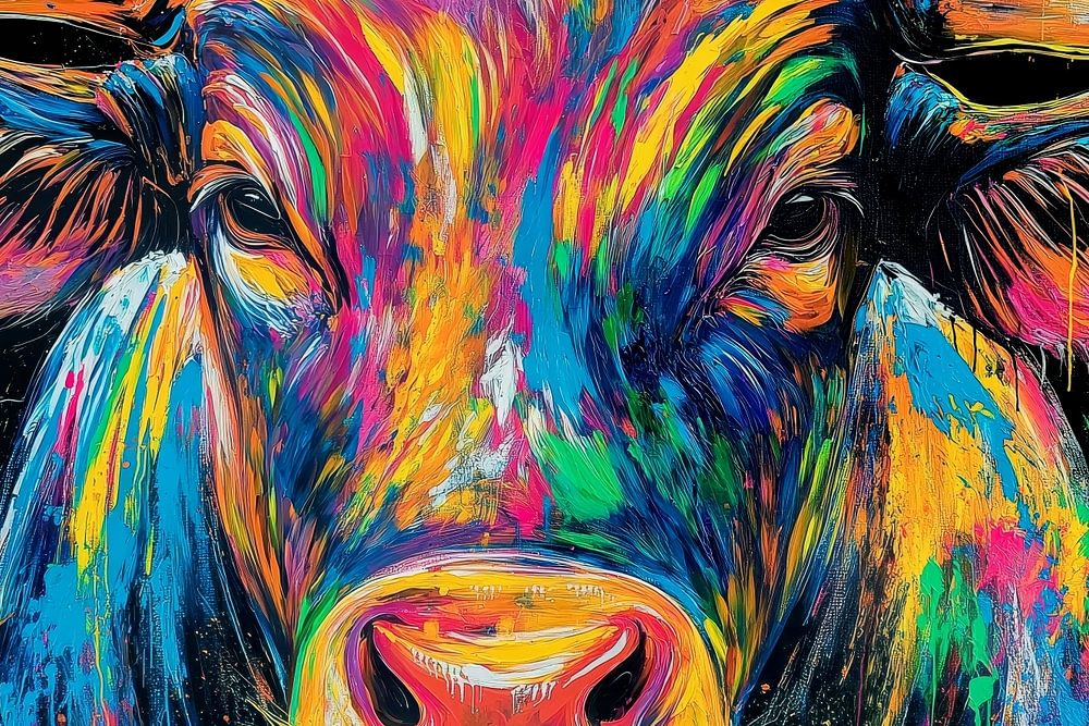 Buy this cow art Colourful bull by ARTemberaubend on canvas, ArtFrame, poster and wallpaper, printed on demand in high quality.
