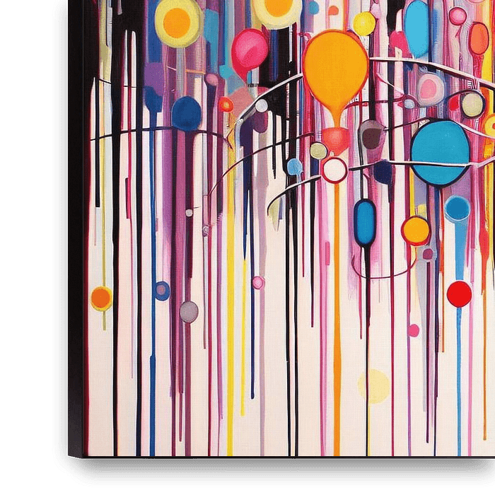 Bring life to your interiors with this cheerful abstract circle print. The primary colours and playful lines create an energetic atmosphere in any room.