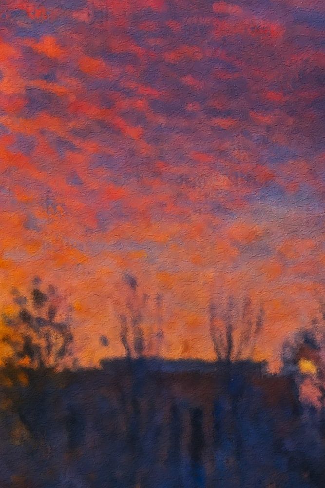 This painting was created from a photograph I took myself, taken at the moment when dawn slowly breathed new life into the world and the stillness of the morning was filled with colour.