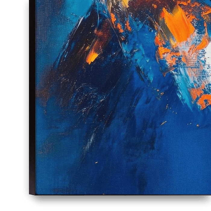 A mesmerising gaze, surrounded by strong blue and orange tones, immediately attracts attention. The artistic blur conveys dynamism and emotion, while the radiant eye harbours deep secrets. Ideal for the living room, it creates an inviting atmosphere and encourages conversation.