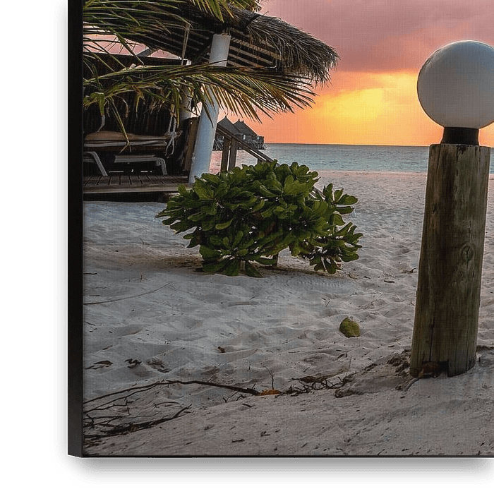 The palm trees on the beach that slope down to the water simply make a great motif. In addition a very colourful sunset