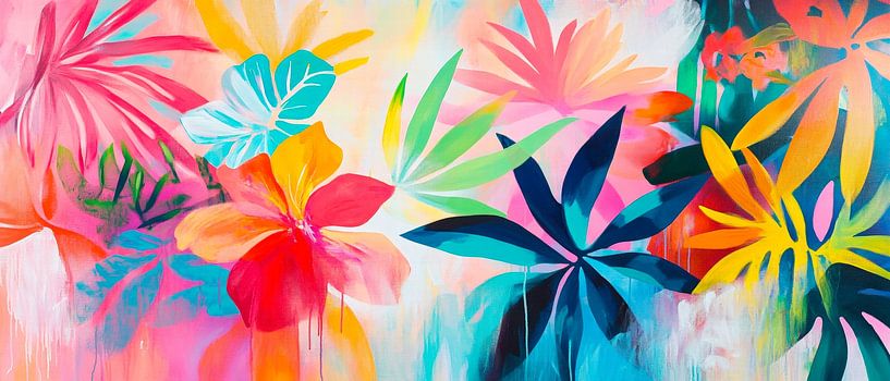 A feast of vibrant colours and blooming formations that invigorate the senses! The vibrant floral patterns in radiant pink, bright blue and cheerful yellow bring a lively freshness, ideal for the kitchen or living room. Here, joie de vivre blossoms and adds a touch of tropical elegance to any room.