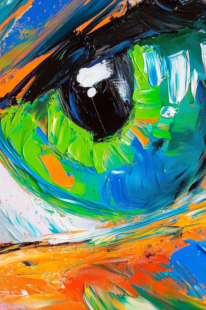 Intense colours shine out from an impressive eye that arouses curiosity and emotion. The dynamic brushstrokes create a vibrant energy that enriches the room. This artistic rendering is perfect for a modern living room, catching everyone's eye while creating a mesmerising atmosphere.