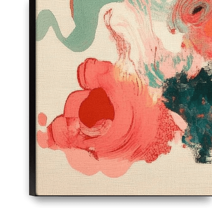 A lively sea of flowers unfolds in soft pastel colours, playing with curved shapes and dynamic, flowing lines. This harmonious composition exudes a cheerful lightness and brings life to any room. Ideal for the living room to create an inviting and atmospheric mood.