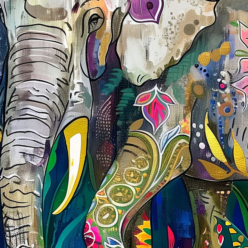 Buy this flower art Colourful floral elephant by ARTemberaubend on canvas, ArtFrame, poster and wallpaper, printed on demand in high quality.