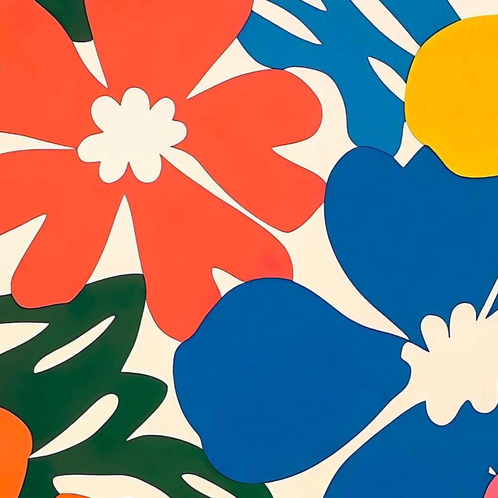 Bring a touch of cheer and artistic flair to your interiors with this colourful floral print, inspired by Henri Matisse's iconic style. The playful shapes and vibrant colours - blue, yellow, pink, green and orange - make this artwork a real eye-catcher. Perfect for lovers of modern art and a fresh, summer atmosphere. Ideal for hanging in the living room, bedroom or office space. Be inspired by the energy and beauty of this abstract floral world!
