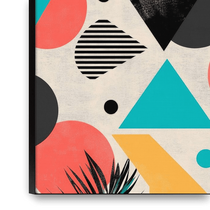 A fascinating interplay of vibrant colours and abstract shapes immediately awakens the senses. The gentle curves of the circles combined with the clear lines of the geometric figures create a harmonious balance. Ideal for a creative office or an inspiring living space, this work of art will bring vibrancy and freshness to any room.