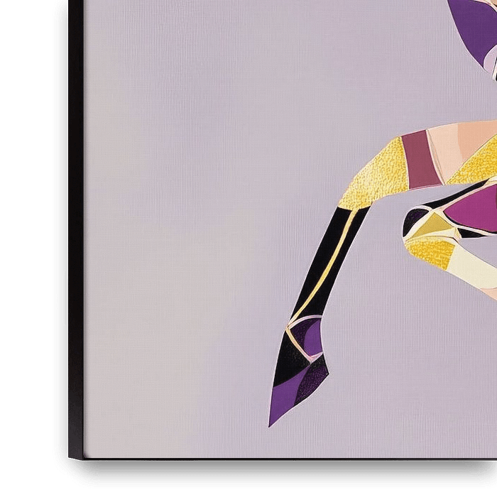 Energy and grace come together in this dynamic, geometric work of art, which depicts a majestic stag. The vibrant colours of purple, yellow and green give it a modern twist. Ideal for a living room or creative study, it will bring vibrancy and style to any room.