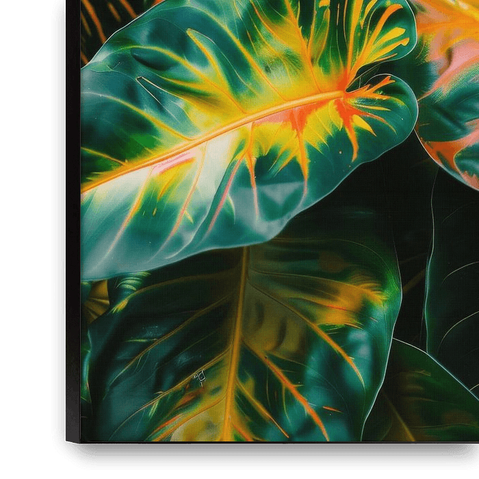 Buy this digital art artwork Colourful leaves of the tropical world by Poster Art Shop as a reproduction on canvas, ArtFrame, poster and wallpaper, printed on demand in high quality.