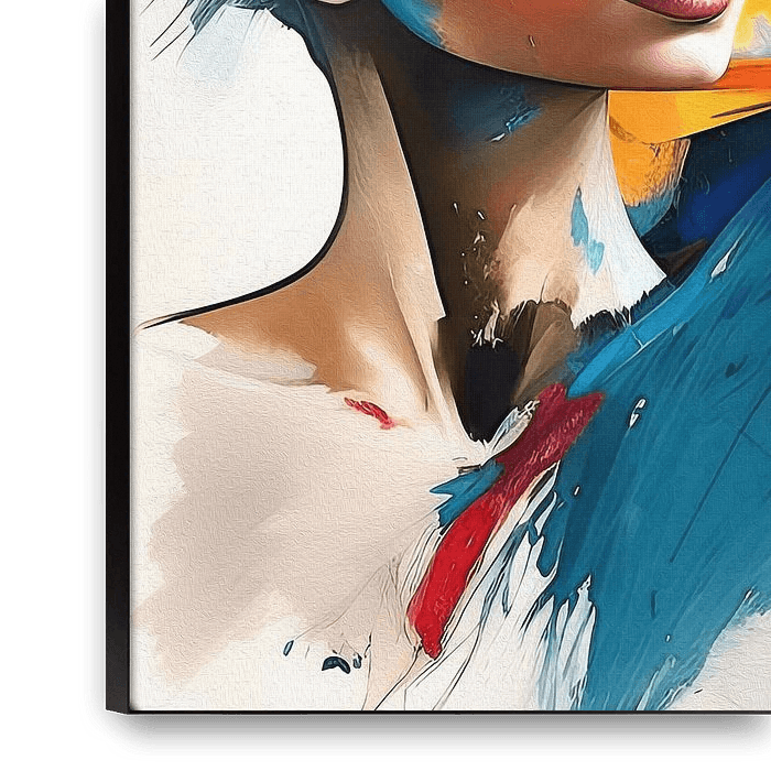 Buy this portrait Colourful mixed media style portrait young woman by Emiel de Lange on canvas, ArtFrame, poster and wallpaper, printed on demand in high quality.