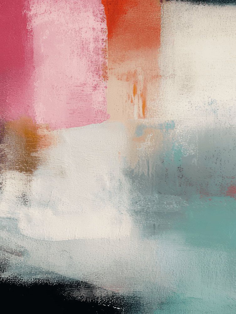 A playful fusion of colour and form, in which vibrant shades of pink, ochre yellow, turquoise and deep red dance in layers on top of each other. The rough texture and soft transitions give the work both depth and movement, making it feel like a snapshot of pure energy. This abstract piece leaves room for interpretation and invites the viewer to discover their own stories in the layered composition.