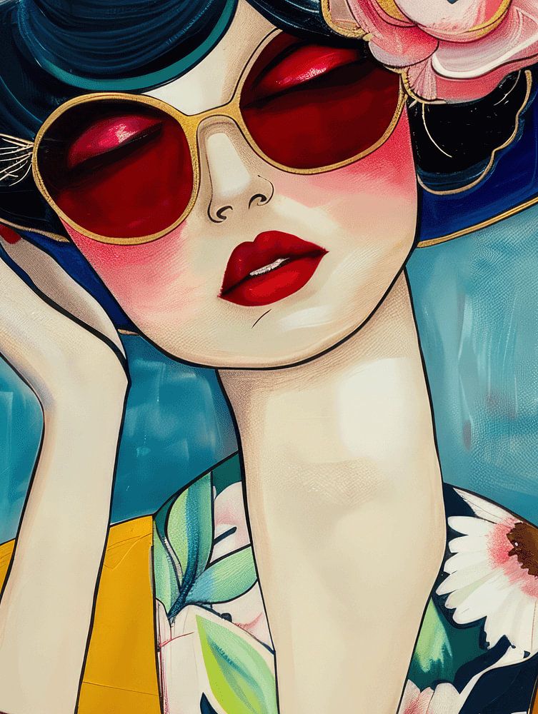 Colourful portrait "Fashionista". Special illustration of a colourful lady. Choose the size and material yourself and make it a real eye-catcher for your interior. Exclusively at Werk aan de Muur.