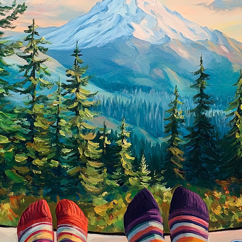 Buy this landscape artwork Colourful socks in a natural paradise by Poster Art Shop on canvas, ArtFrame, poster and wallpaper, printed on demand in high quality.
