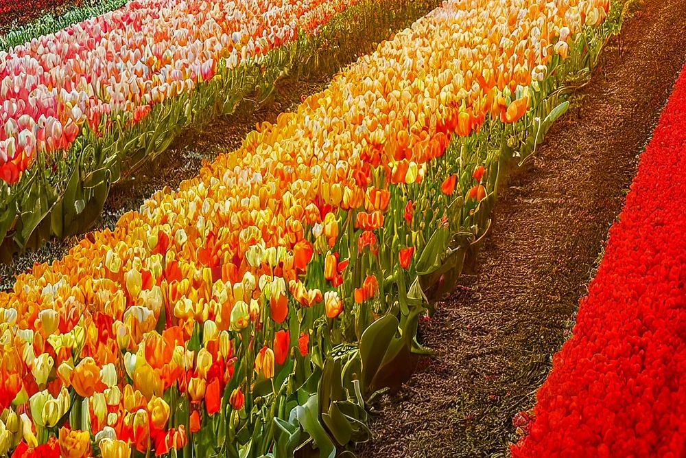 Buy this flower art Colourful tulip field in Holland illustration by Animaflora PicsStock on canvas, ArtFrame, poster and wallpaper, printed on demand in high quality.