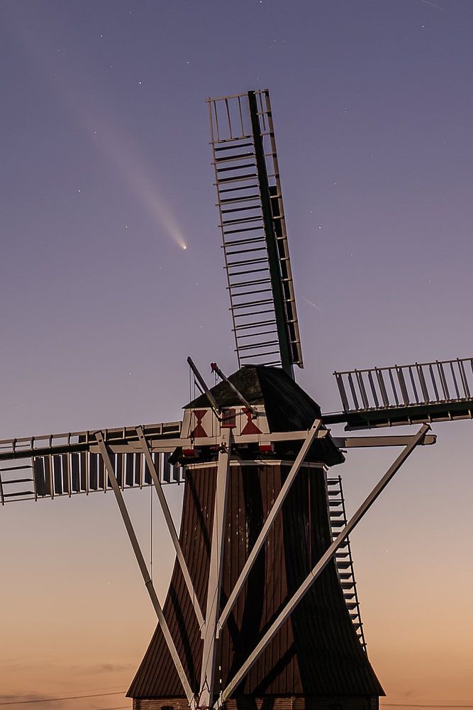 Polder mill the Dellen lent itself as a perfect foreground on the west to capture the comet. This mill was built in 1855 and can be found beautifully rural near Nieuw Scheemda