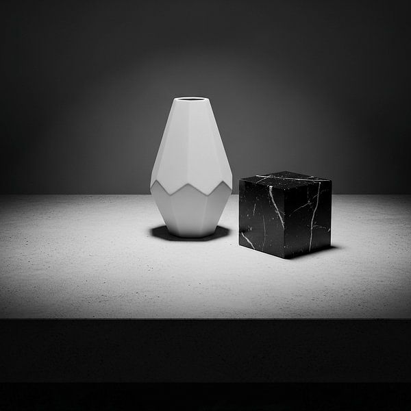 This compelling visual study in form and shadow redefines traditional still life for the modern interior. Designed to anchor a sophisticated living space, the composition employs brutalist textures and uncompromising geometry. The harsh, directed lighting carves the space, transforming mundane objects into monumental sculptures. A…
