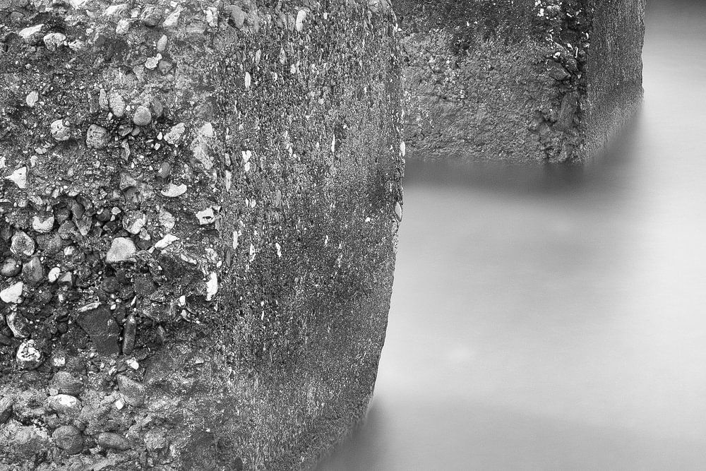 Concrete blocks leading into the sea. These are remains of a temporary harbor which was used for the built of the storm surge barrier.