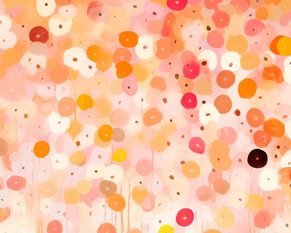 Details: abstract, painting, polka dots, pink, orange, white, brown, warm, playful, art, Warm glow