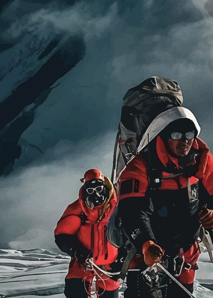 Two intrepid mountaineers battle against the elements as they ascend a treacherous snow-capped peak. This breathtaking image captures the spirit of adventure and the beauty of the natural world.