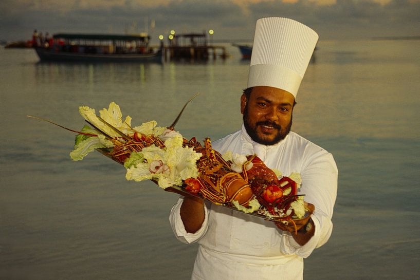 I photographed this friendly chef in the Maldives. I had actually flown there for a diving holiday. When the hotel manager found out that I was a photographer, he kept coming up with ideas for me to photograph. He also offered to let me photograph the chef with a beautifully decorated plate of lobsters. I didn't want to miss this…