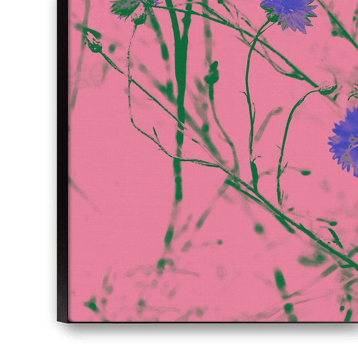 Buy this flower art Cornflowers in cobalt blue, green and pink. Retro style. by Dina Dankers on canvas, ArtFrame, poster and wallpaper, printed on demand in high quality.