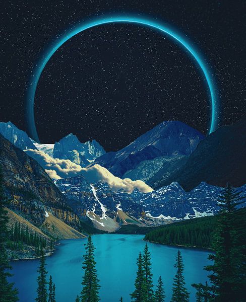 Buy this digital art artwork Cosmic Ring Above Frozen Mountains by Arkana Creative as a reproduction on canvas, ArtFrame, poster and wallpaper, printed on demand in high quality.