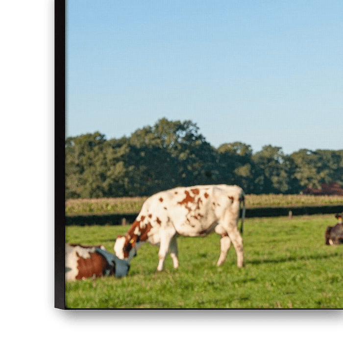 Buy this landscape artwork Cow looks surprised (photo portrait) by Color Square on canvas, ArtFrame, poster and wallpaper, printed on demand in high quality.