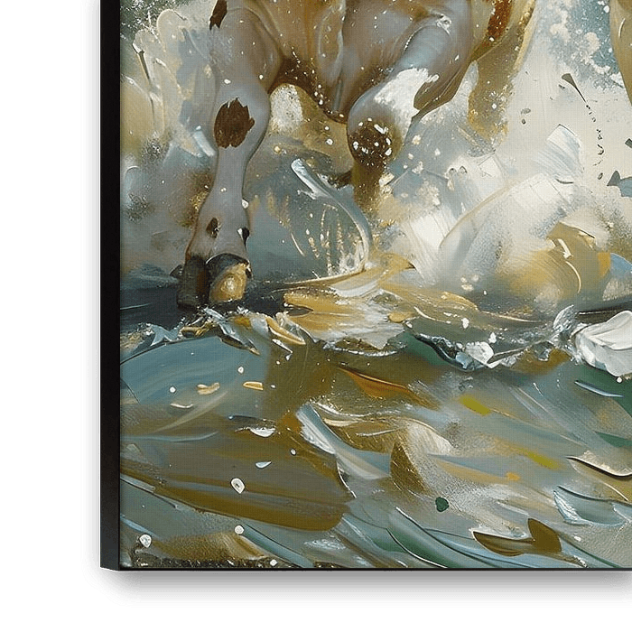 A dynamic painting that celebrates the energy and freedom of cattle in action.