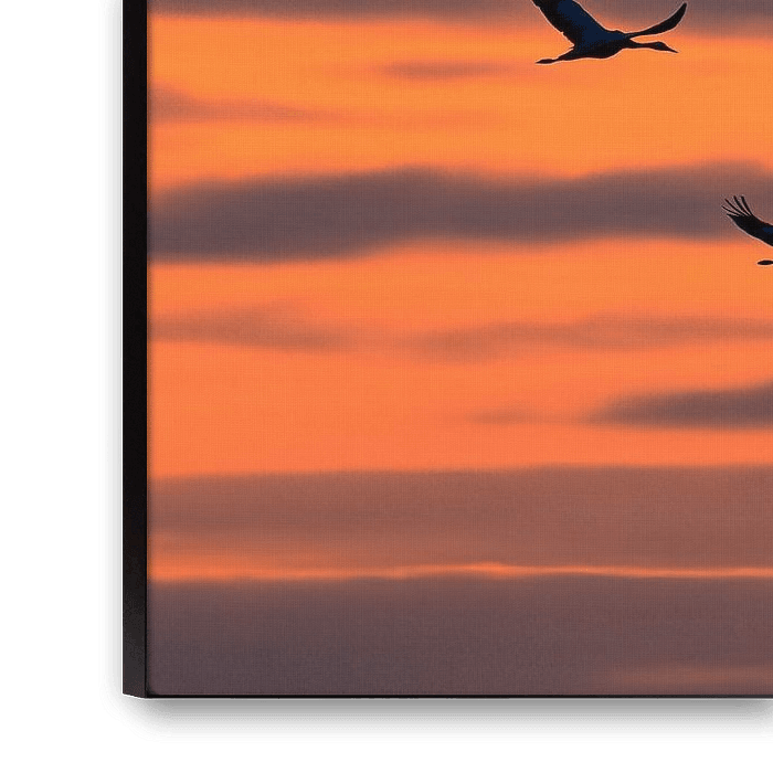 Buy this bird art Crane birds flying in a sunset during autumn migration by Sjoerd van der Wal Photography on canvas, ArtFrame, poster and wallpaper, printed on demand in high quality.