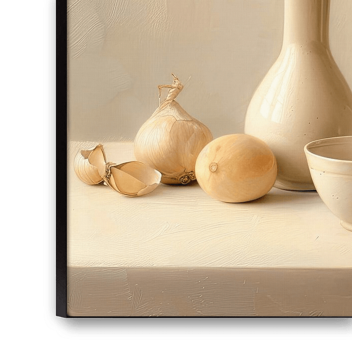The neutral colours of the objects and the soft, muted background reinforce the sense of calm and simplicity that this work conveys.This artwork fits perfectly into both modern and classic interiors, bringing a touch of calm and contemplation to any space.