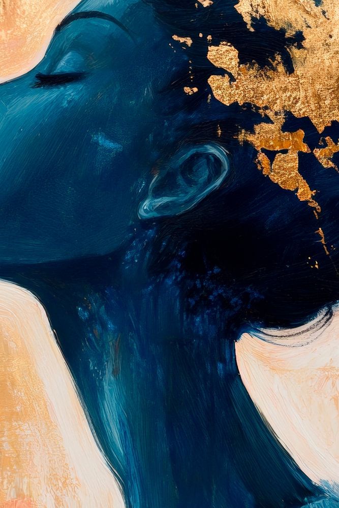A powerful expression of beauty and individuality! The silhouette-like depiction of a woman with radiant golden hair and a soft, colourful background. This harmonious composition adds warmth and elegance to any room. Perfect for the living room or bedroom, it creates an inspiring and calming atmosphere.