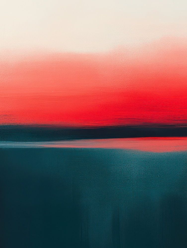A powerful abstract landscape in which the horizon fades into a shimmering red against a cool blue background. This composition balances between stillness and intensity - perfect for lovers of minimalist art with an emotional charge. The soft textures and colour gradients bring a sense of space, tranquillity and depth. An elegant statement for modern interiors, ideal for living rooms, offices or creative studios.