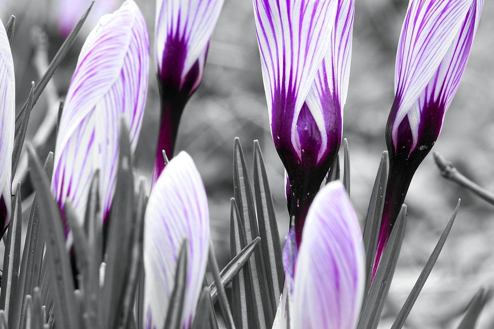 Permanent spring on your wall? That's totally fine with these crocuses. The details of the flowers stand out beautifully due to the colour scheme used.