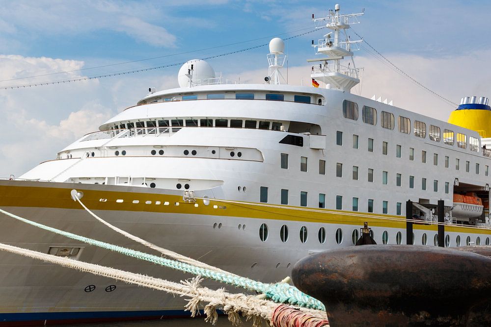 Buy the photo Cruise ship in harbor by Rolf Pötsch on canvas, ArtFrame, poster and wallpaper, printed on demand in high quality.
