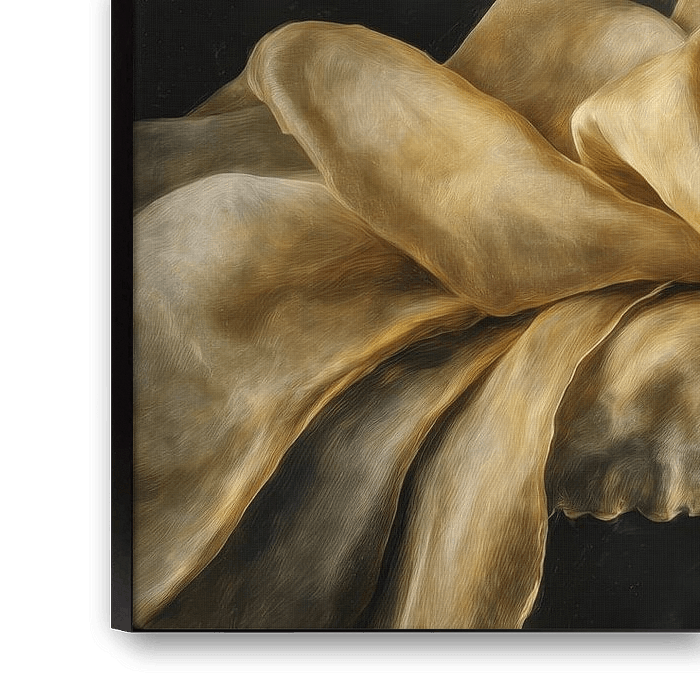 This still life with a crystal perfume bottle in warm gold and amber tones feels mysterious and elegant, bringing a luxurious sophistication to your interior. The interplay of soft light and glossy textures evokes a sense of serene depth and adds a richness to the look. Beautifully suited to Grandeur Chic, Classic, Modern Chic and Vintage interiors and a special addition for living room, bedroom, hallway and beauty salon.