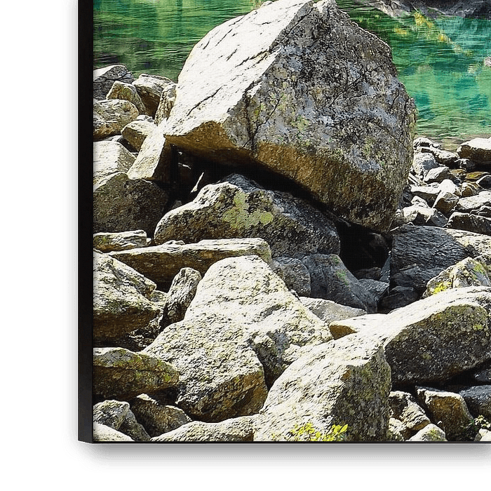 About "Crystal clear mountain lakes - spectacular alpine photography with clear reflections and mountain panorama. Buy a mural or canvas now and enjoy nature."