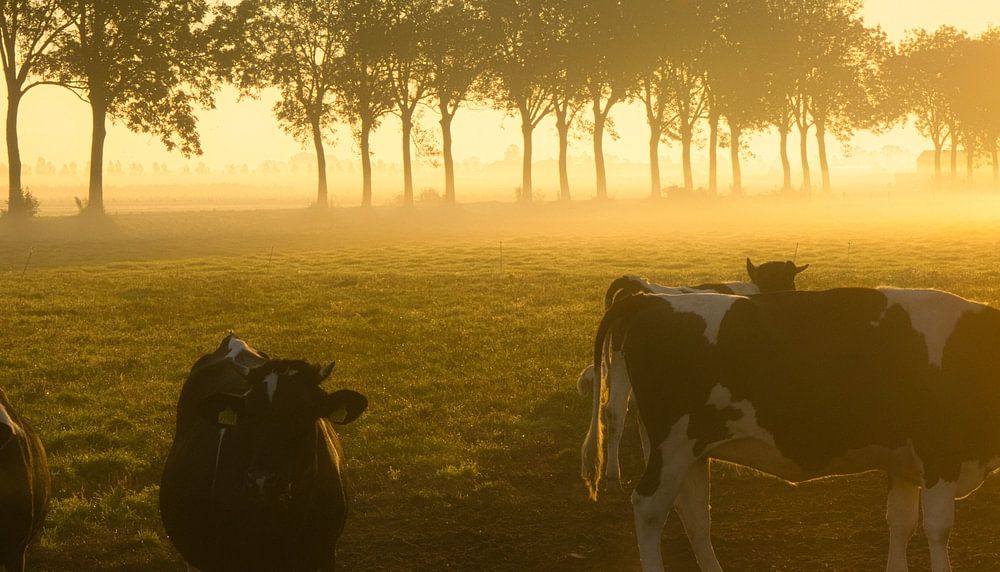 Buy the photo Curious cows in the fog by peterheinspictures on canvas, ArtFrame, poster and wallpaper, printed on demand in high quality.
