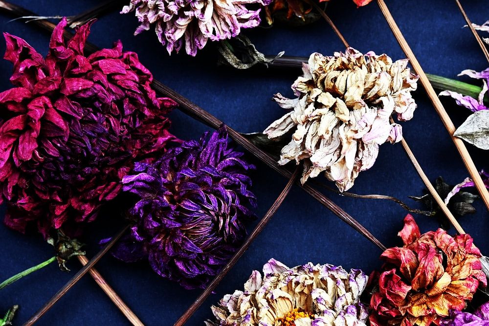 These Dahlias are finished blooming still beautiful flowers. The warm colors create a beautiful color palette.