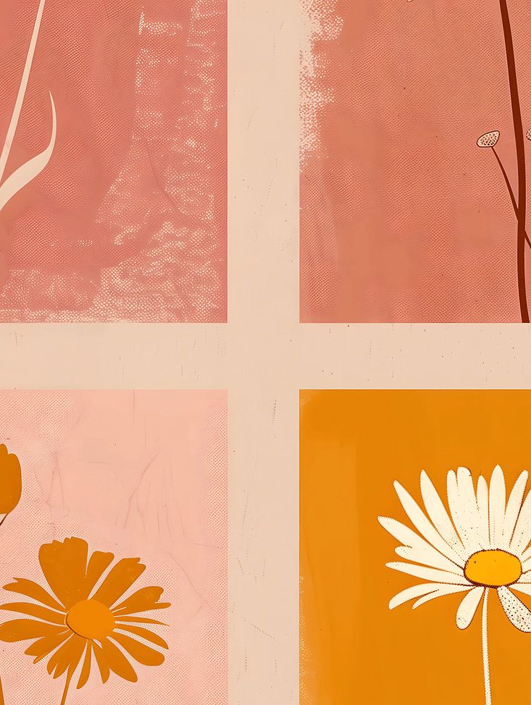 Enter the harmonious world of daisies with this unique digital artwork that effortlessly combines abstract minimalism and boho chic elegance. This artwork embodies the perfect fusion of Japanese modesty and Scandinavian warmth, creating a timeless masterpiece that exudes tranquillity and sophistication.